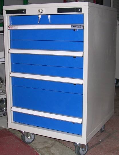1、根据需要选择是否装配脚轮。工具车的承重一般在40-150kg,装配脚轮一般适合轻型工具车,如果实际存取的物品超过这一承重范围,从安全角度考虑,建议采用重型工具柜存放。
